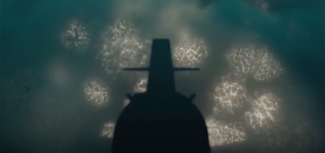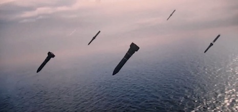 ■ 海中での「やまと」の動きや敵の原潜との魚雷バトルは,前作同様,フルCGと考えて良い。バトル全体としては,前作よりもかなり充実した描写になっている。北極海らしく探心音が氷山で跳ね返ったり,氷の下の大きな空洞を利用した操艦は,本シリーズならではのアイディアである。「北極海海戦」において,米国原潜との海戦は概ね原作のアイディアを踏襲していた。シーウルフが70ノット以上の高速潜行をいかに実現したかのトリックは原作ファンなら誰もが覚えているが,その他の読者のために,これは観てのお愉しみとしておこう。原作では,「やまと」が勝利を得るための芸術的と思える見事な操艦を描いていたので,これを映画でも再現して欲しかった。海中のCG描写に大きな影響を与えるものではなく,CIC上部での戦況マップのグラフィック表示で,原潜の位置関係と魚雷の進行経路を少し修正すれば済むだけの話である。