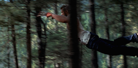 ■ 本作はシリーズ最高傑作であると評価したい。その半面,CG/VFXの使用量は最低水準である。それでも,ウルヴァリンの超硬合金の爪(写真3)や追跡者ピアースの金属製の義手(写真4)の大半のシーンはCGで描いているだろうし,ヘリやとてつもなく長い列車もCG描写だと思われる。狂乱状態のプロフェッサーXの猛烈なサイコパワーで空間が歪むシーンなども VFXの産物だろう。担当はImage Engine, Soho VFX, Rising Sun Pictures等で,さほど大人数をかけていない。