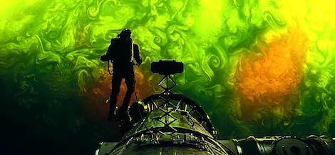とは言ってみたものの,残る2つは何かと問われると,多数の候補の中から選ぶのに少し躊躇する。「本格派」と言うからには,舞台を宇宙に移しただけで,地球人類の生存条件を考慮していないアクションドラマ,所謂「スペースオペラ」は含まない。即ち『スター・ウォーズ』シリーズ,『スター・トレック』シリーズ,『DUNE/デューン 砂の惑星』(21年9・10月号)等は数えない。宇宙から到来した異星人の地球侵略も完全に対象外だ。地球の重力圏を脱した宇宙空間,しかるべき宇宙船内,惑星や衛星上の出来事で,科学的な考察も取り入れているものだけを「本格派宇宙もの」と考えている。『アポロ13』(95)『ファースト・マン』(19年1・2月号)は間違いなく宇宙が対象で,いずれも秀作だが,完全に実話であり,SFとは言い難い。